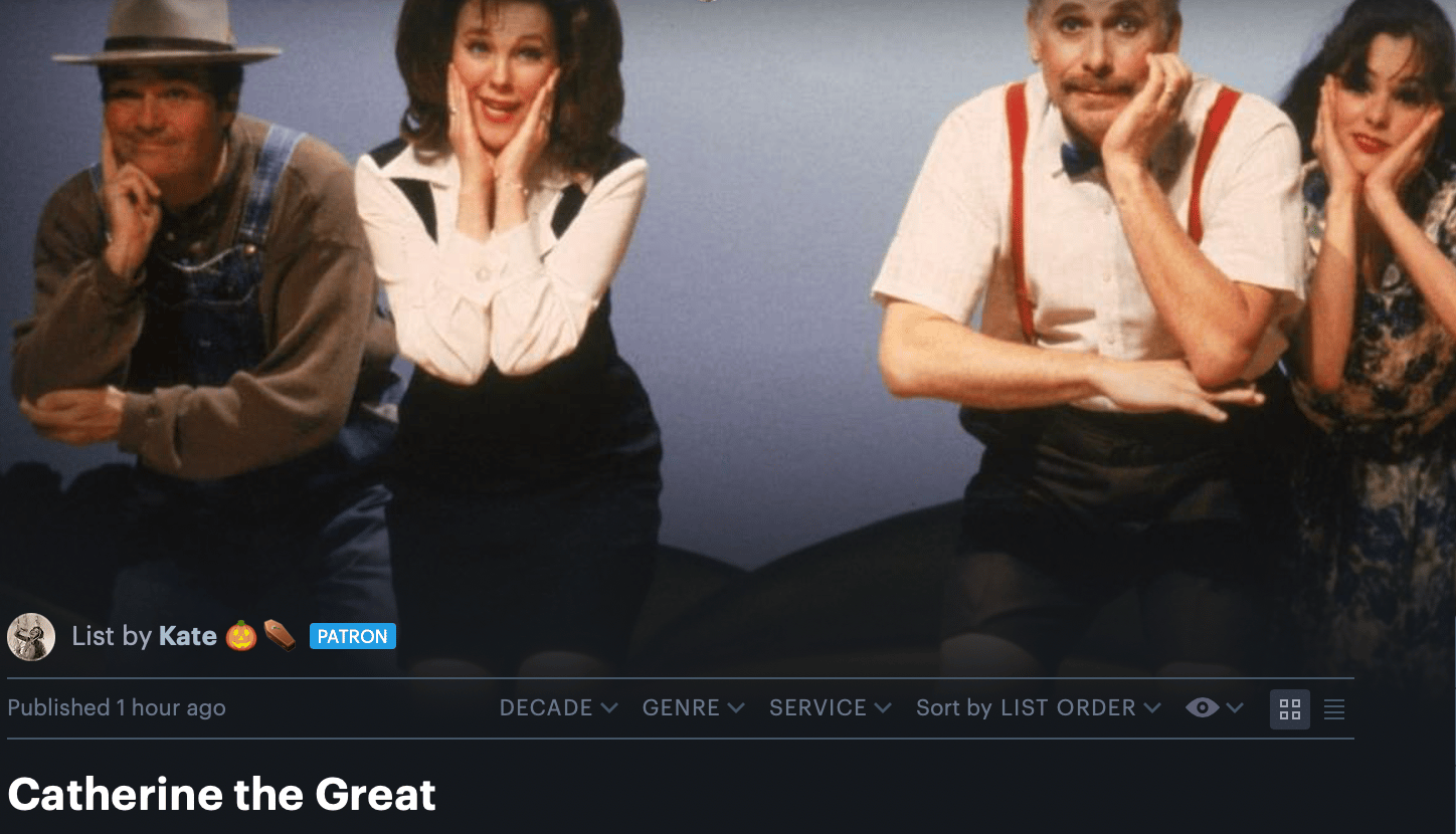This week’s list theme is the late, great Catherine O’Hara. Check out my list, and let me know if you watch any of my recommendations!